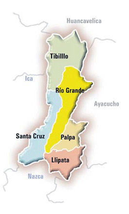 La Provincia de Palpa, con su Capital Palpa, cuenta con cinco (05) distritos: Llipata, Palpa, Santa Cruz, Río Grande y Tibillo.